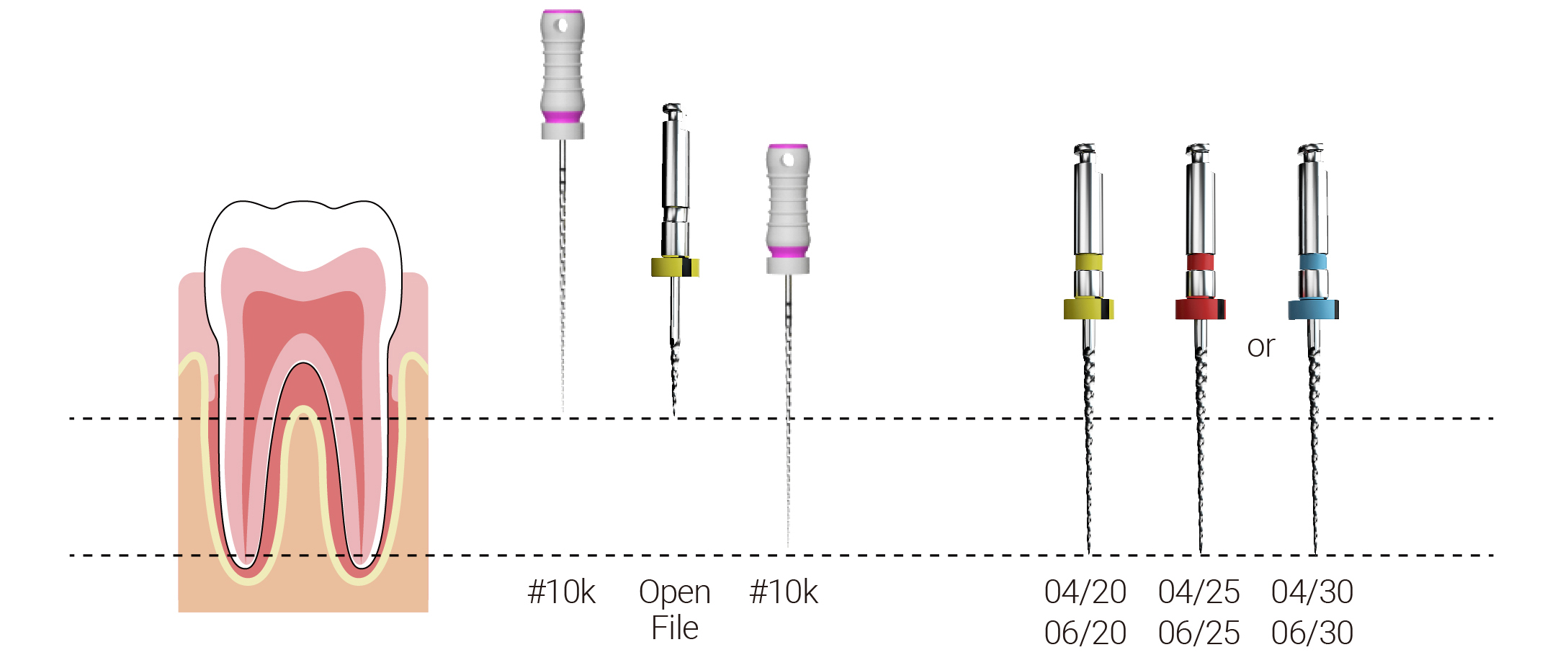 - Размеры: Полный набор размеров по ISO (20, 25, 30) для последовательного и безопасного препарирования.