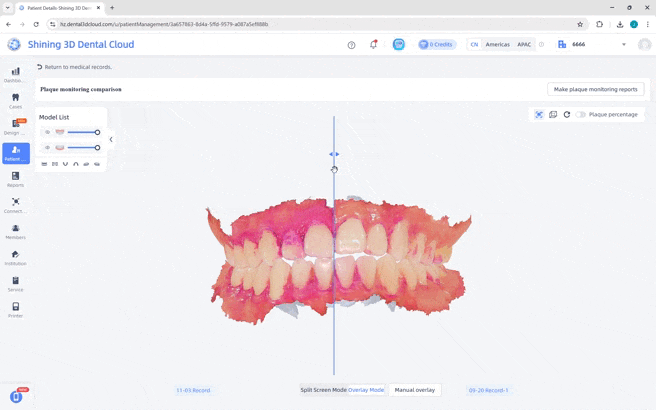 Записывает отчёты в разное время леченияSmart Report Comparison сохраняет результаты осмотров и позволяет отслеживать динамику лечения в один клик. На одном экране собраны все снимки и данные о налёте за предыдущие визиты — это удобно для контроля прогресса и наглядной демонстрации пациенту. |