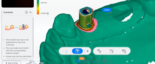 Работа со сканбодиБиблиотеки популярных брендов скан-боди позволяют выполнять выравнивание одним кликом, ускоряя имплантологическое протезирование. |